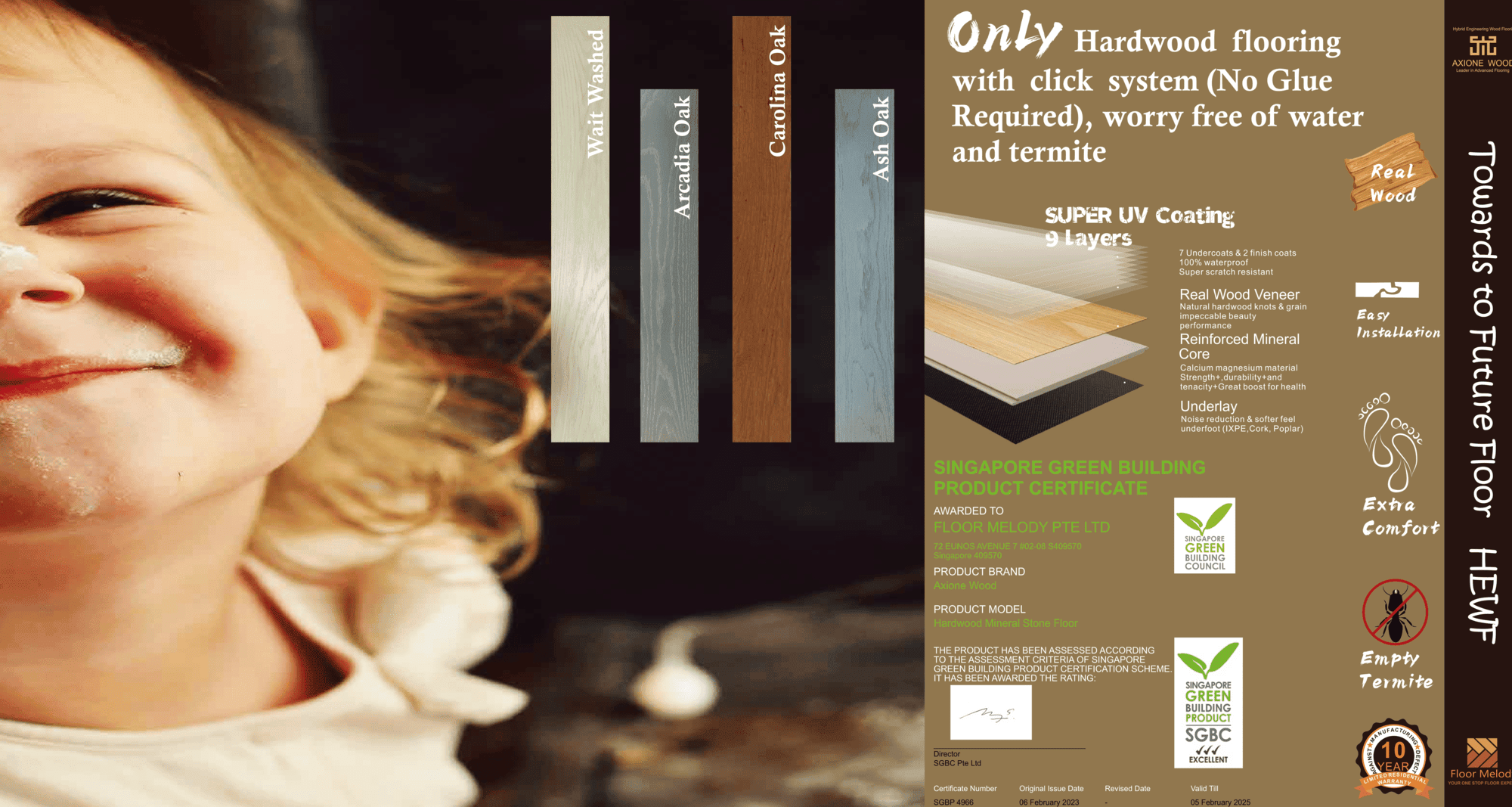 4.  Towards the future flooring – Compared to vinyl, solid timber and engineered wood floor, Hybrid engineered wood flooring is the trend for future renovation, it is an Eco-friendly product made of stone corp and a layer of natural timber, helping the world to reduce its carbon footprint, less demanding on the lumbering but sustainable for our forest resource, therefore, we should beautify our home with natural wood products like hybrid engineered wood flooring.